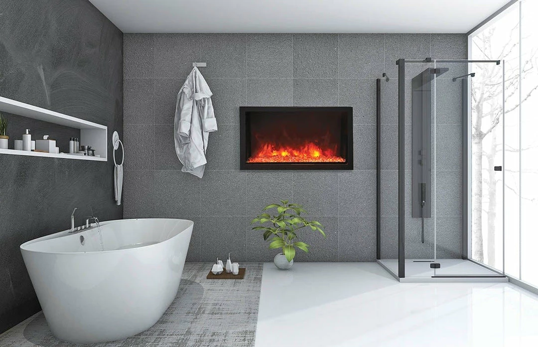 Built with Amantii’s FIRE & ICE® Flame presentation made of three color LED light strips allowing for multicolor flame options. With just a click of the included remote control, choose from blue, rose, violet, yellow or orange colored flames.