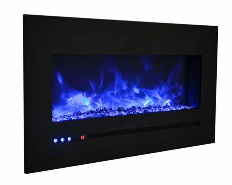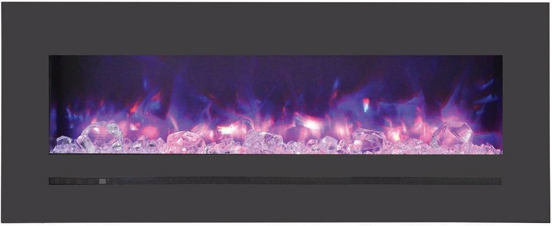 The WM-FML-48-5523-STL electric fireplaces featuring a deep charcoal colored steel surround. The steel surround has aesthetic proportions and features a touch pad with a numerical temperature display. Heat is emitted through the face below the glass viewing area allowing for a flush mount installation. If recessing is not an option, this model is also wall mountable and perfect in apartments or in places where renovation or construction is not an option.