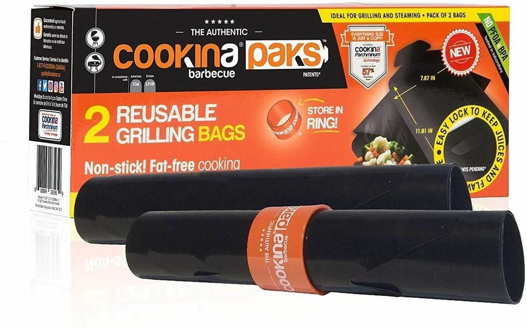 Pack of 2 reusable grilling bags. Ideal for grilling or steaming on the BBQ or smoker. Non-stick. BPA and PFOA free. Not for commercial use. Do not place in direct contact with flames, burners or heating elements. Do not use above 550oF (288oC).