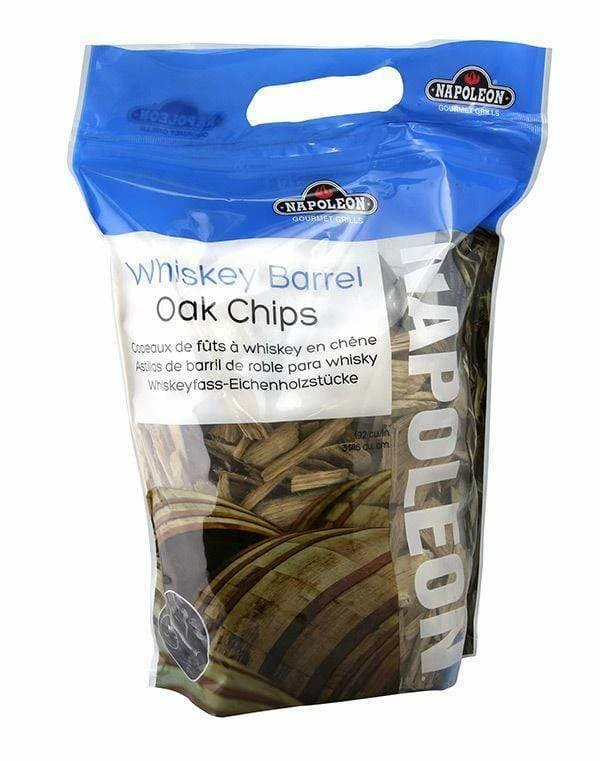Whiskey barrel oak wood chips deliver a mild smoke flavor with a beautiful whiskey aroma. Whiskey barrel oak smoking chips as a whole are sweet and strong without being overpowering, ideal for bringing out the flavor of beef, pork, poultry, fish, fruit, and vegetables. Ideal for use in the Napoleon Smoker Pipe or Smoker Box accessories, or the integrated smoker tubes in the PRO665/825.
