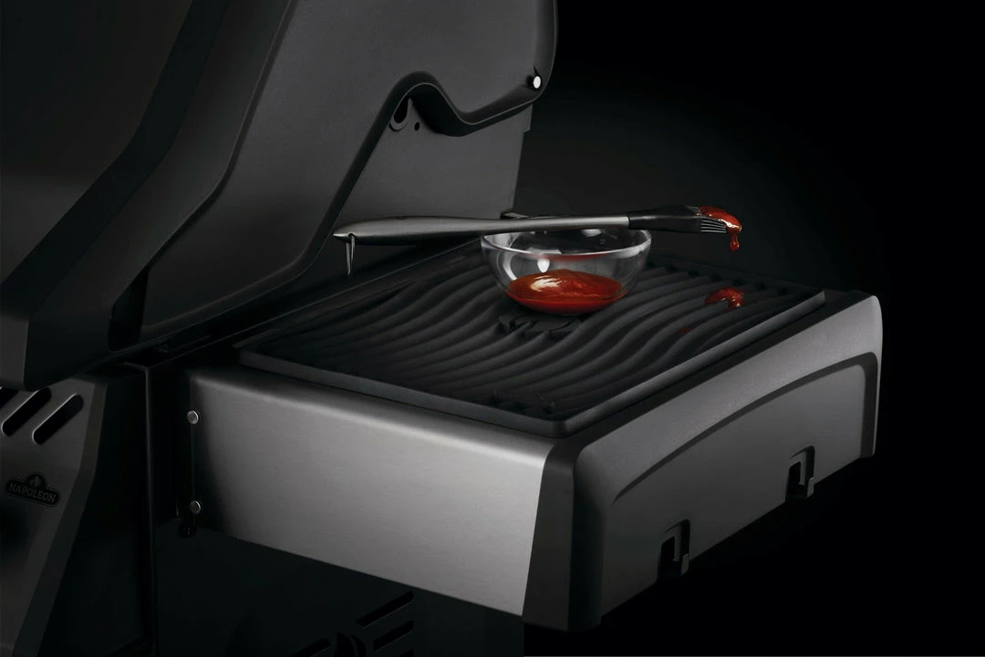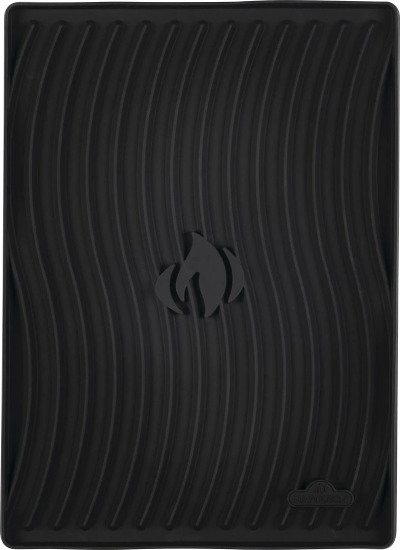 Keep your side shelves clean and safe with this perfectly sized, heat resistant, silicone Protective Mat. Featuring the iconic Napoleon WAVEâ„¢ pattern and flame, this nonslip silicone is ideal for placing hot pots and tools upon. When things get deliciously messy, like when you’re making your famous ribs, easily remove the Side Shelf Mat and toss it into the dishwasher to clean.