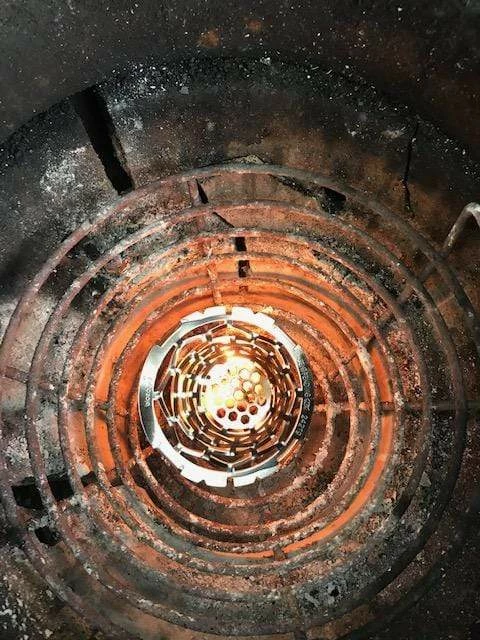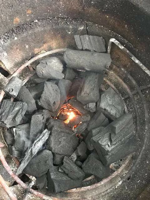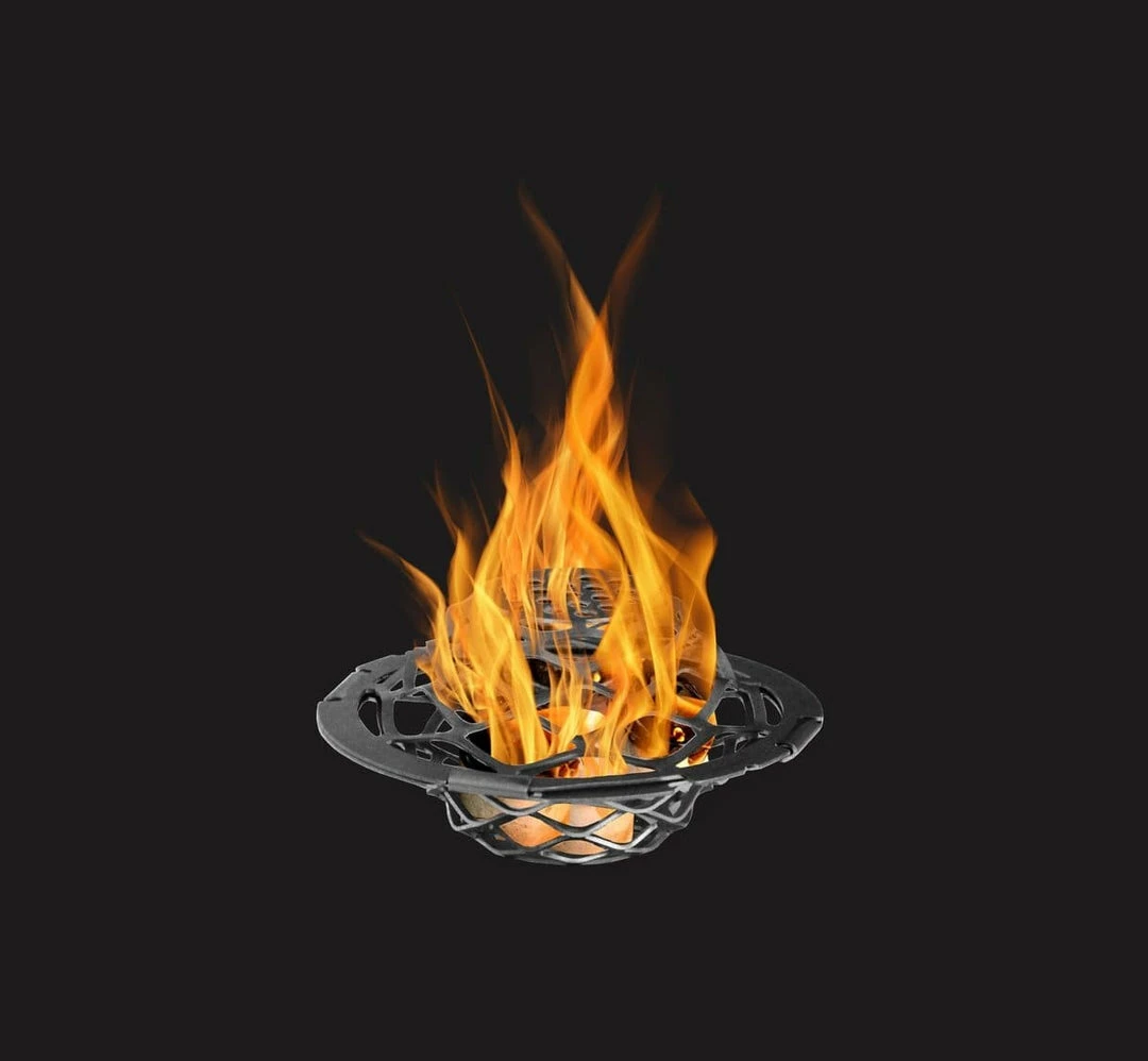 3. Light the fire starters and place your wood or coals on top. Watch the fire take off, it’s that easy!