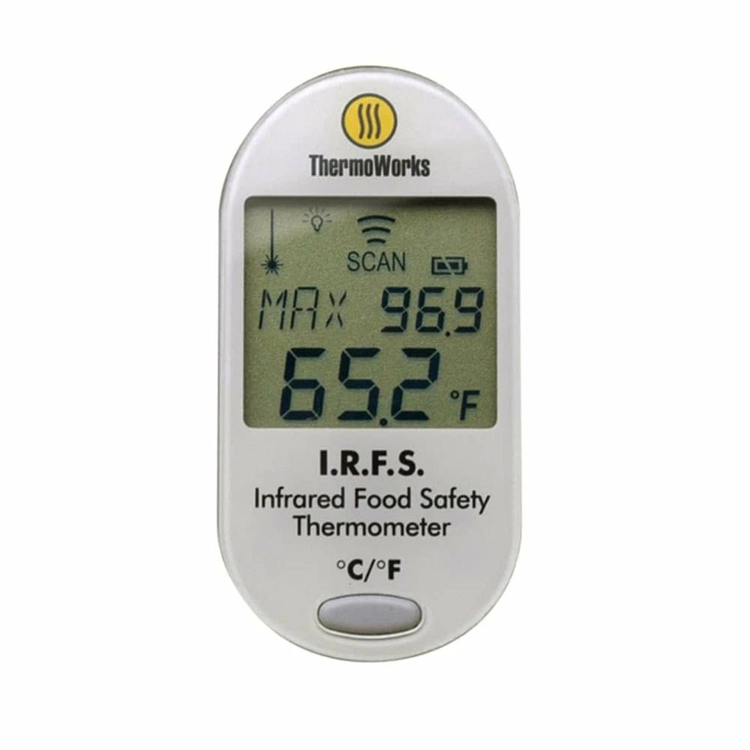 For measuring surface temps of food and a whole lot more, the Infrared Food Safety Thermometer is your go-to infrared. We’ve pre-set the emissivity to 0.97, within the optimal food range, so you don’t have to adjust anything when measuring food in cold- and hot-holding cabinets, in reach-ins, of grill tops, during receiving or even in the freezer. The IRFS really excels with frozen food with its pre-set emissivity setting of 0.97.