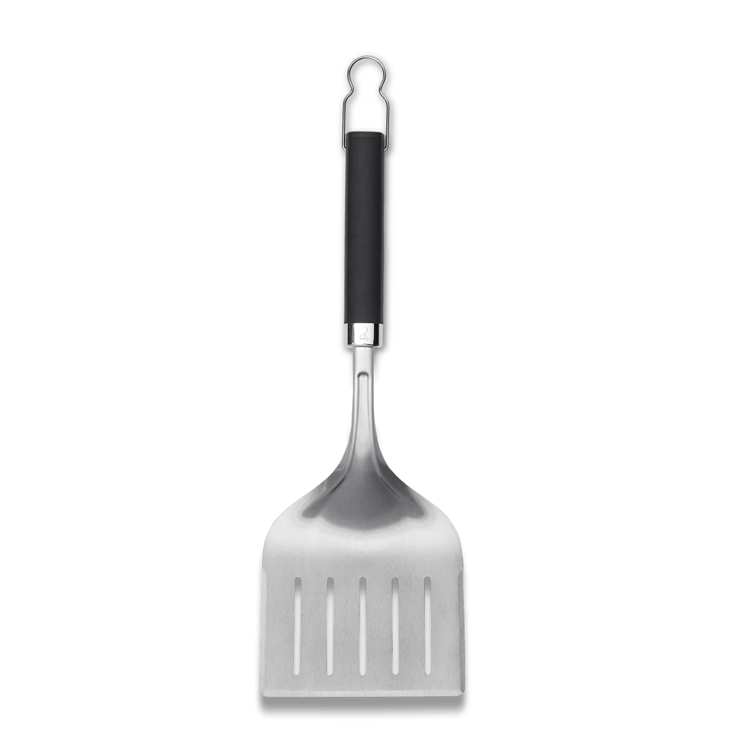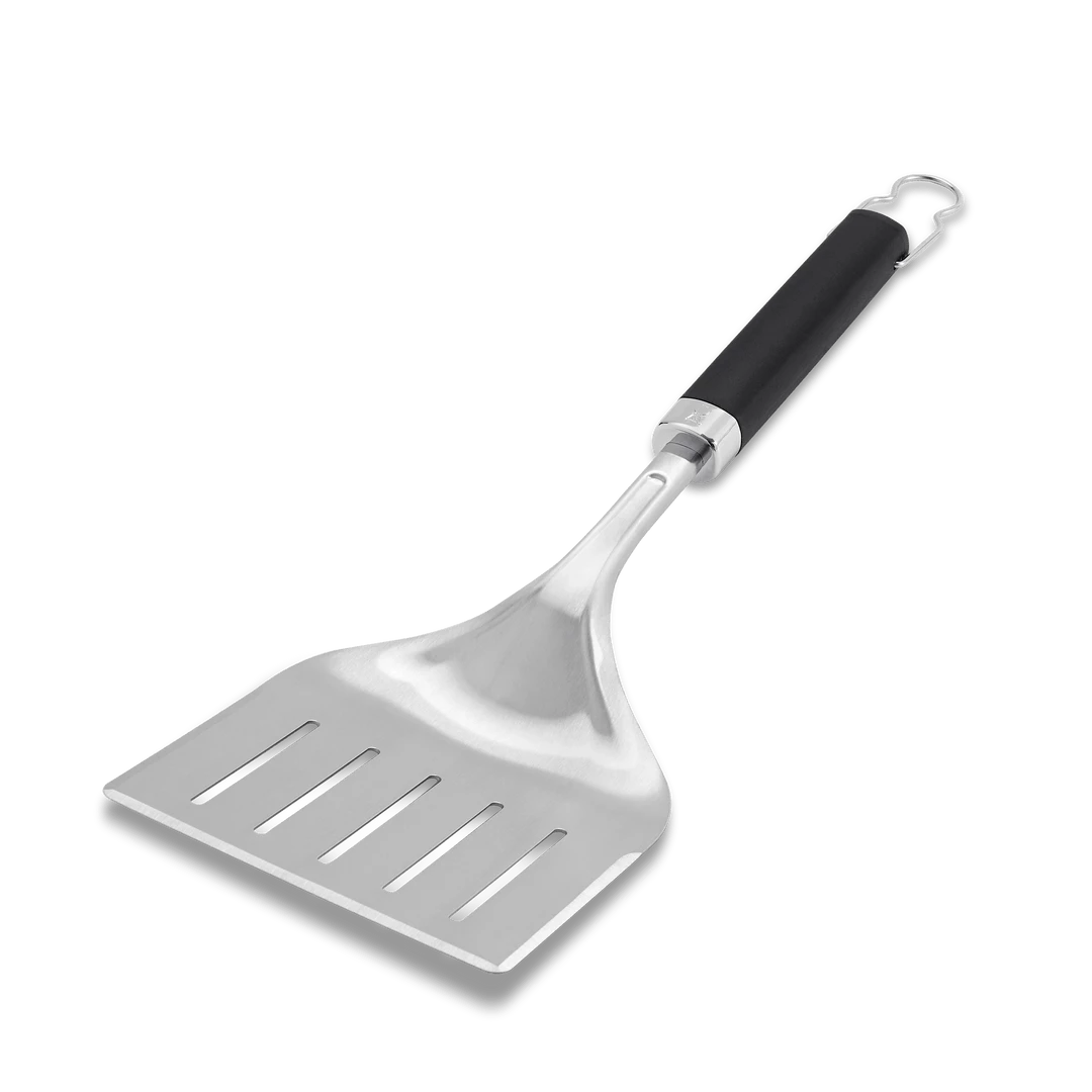 Lift and move large cuts of meat or delicate fish with ease. The wide grill spatula features a 3-sided beveled edge design that allows you lift foods with precision from any angle. The heavy-duty stainless-steel construction and soft-touch handle provide control as the oversized head picks up large cuts or fragile foods with minimal effort.
