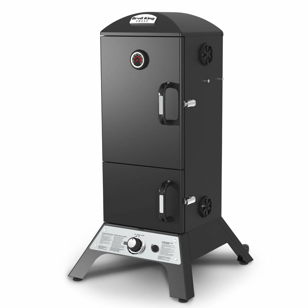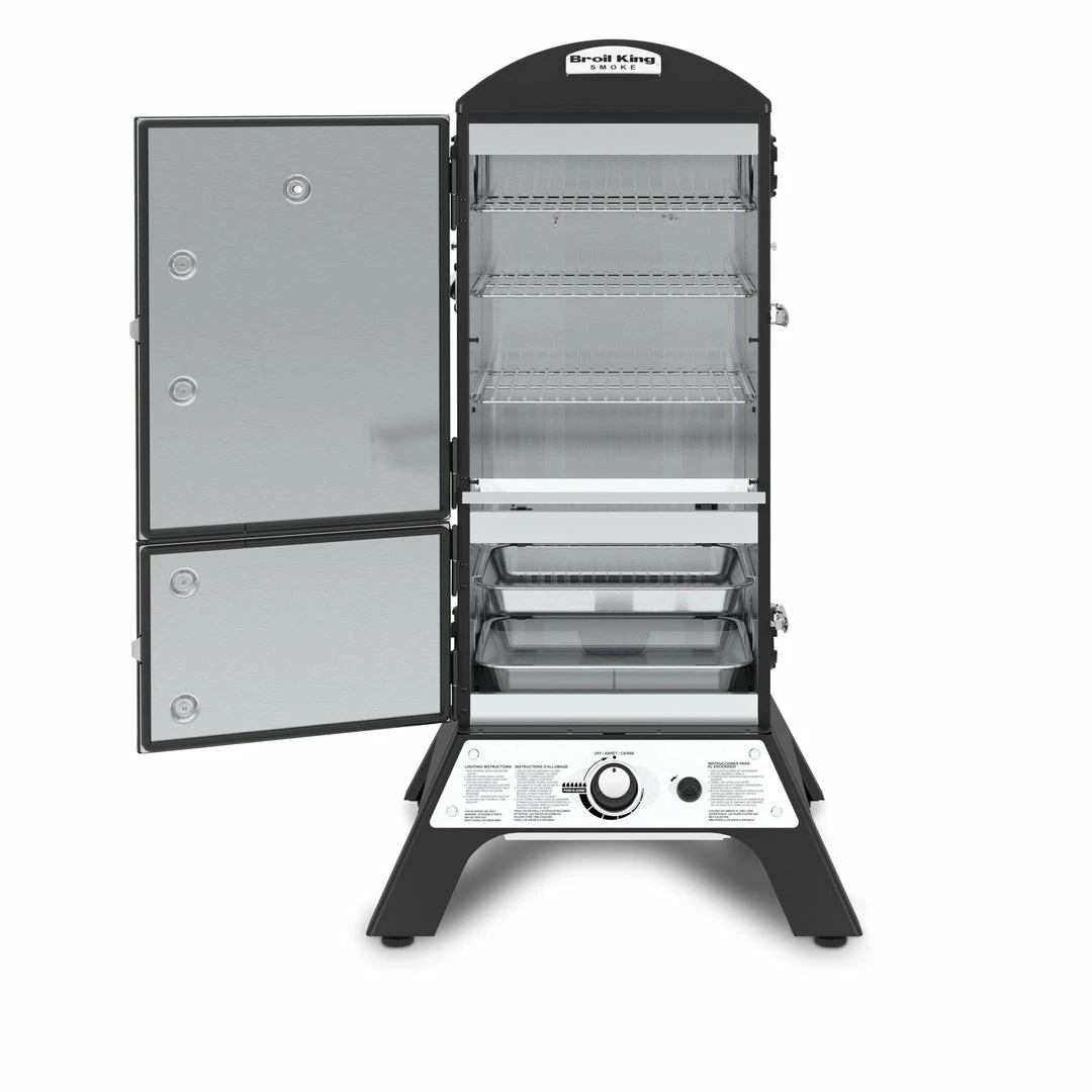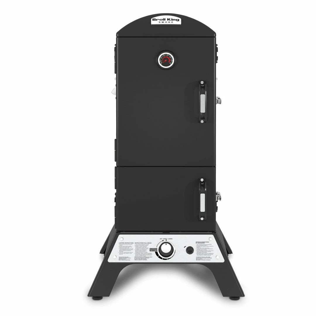 Smoke™ Gas features 770 sq. in. total cooking space, four adjustable stainless steel cooking grids, Sure-Lite™ electronic ignition system, Adjustable Roto-Draft™ cast aluminium damper system, and two rugged steel doors with gasket premium latch system. WHY ARE PEOPLE RAVING ABOUT SMOKE GRILLS? Broil King® proudly introduces a new line of exceptional vertical smokers. Available in either propane or charcoal models, Broil King® Smoke™ cabinet smokers are engineered to create mouth-watering, authentic Smoke™ flavor. Every detail is evident throughout these smokers. From durable construction and stylish accents to exceptional cooking versatility, Broil King® brings people together. Great food, great flavor, great barbecues every time.