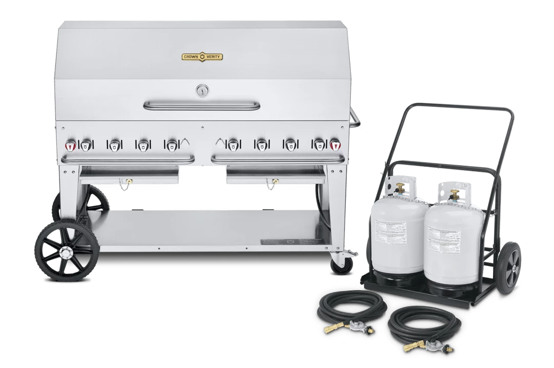 We have delivered what you have been asking for. Ideal for the large caterer, golf club or hotel. This grill includes everything you need in one complete package. All options and accessories are available for this model. Also available in a 72″ model. Package includes: 1 x 60″ Roll Domes & 1 x 60″ Bun Racks Remote propane cart RPS486072, 2 – 50lb propane cylinders CYL-50 & 2 – 25′ hoses.