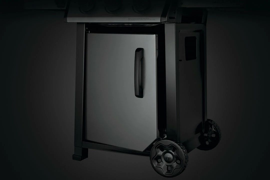 The Freestyle 365 Propane Gas Barbecue with Range Side Burner is a compact grill with premium features and unbeatable value. Ignited by the instant JETFIRE ignition system that lights the main burners with a jet of flame easily, every time. Get the perfect sear over the cast iron porcelainized enamel cooking grids. Four stainless steel burners provide even heat, easily controlled and monitored by the onboard temperature gauge. The rugged wheels allow this barbecue to go where the action is, while the easy-to-fold side shelves, featuring tool hangers and a bottle opener, make sure that the Freestyle meets your lifestyle and space.