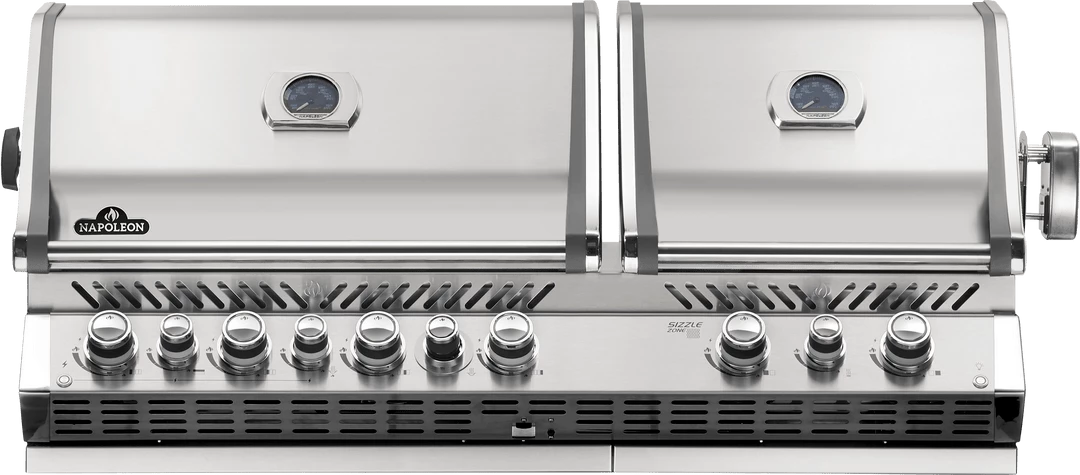 The Built-in Prestige PROâ„¢ 825 BBQ with Infrared Rear Burner is beautiful and spacious, perfect for feeding a crowd, or just a couple people. Two heads are better than one, and the same is true for this grill. Two separate grill heads allow for a multitude of cooking options including direct searing over infrared heat, indirect cooking, and using the rear burner for perfect rotisserie meals. You’ll know it’s a Napoleon with the iconic WAVEâ„¢ cooking grids for those distinctive sear marks. Turn this grill into a smoker by using the integrated wood chip smoker tray. The LED Spectrum NIGHT LIGHTâ„¢ Control Knobs have near limitless color options making night-time entertaining a breeze, and they also glow red when the gas is left on as a safety feature. This means you always know which burners are lit, making it easier to get the perfect sear or the ideal indirect grilling position. Stainless steel construction with chrome accents provide unparalleled durability and style making this grill the crowning jewel of your outdoor kitchen.