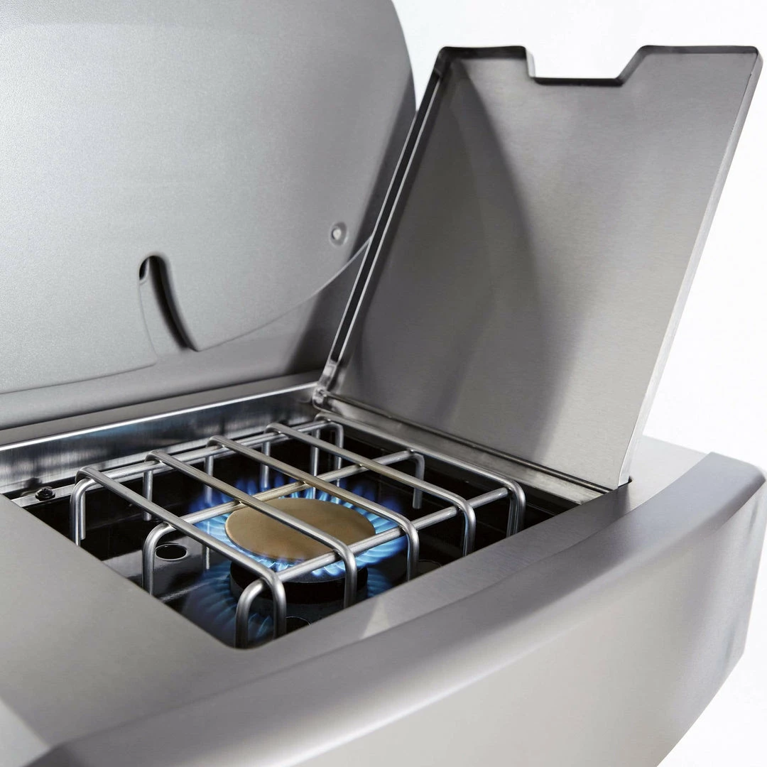 This grill features an enclosed cabinet with two steel doors that has always stayed timeless to the Weber Genesis. Also comes with a 12,000 BTU side burner and a 9,000 BTU sear station, making it an all-in-one backyard cooking system!