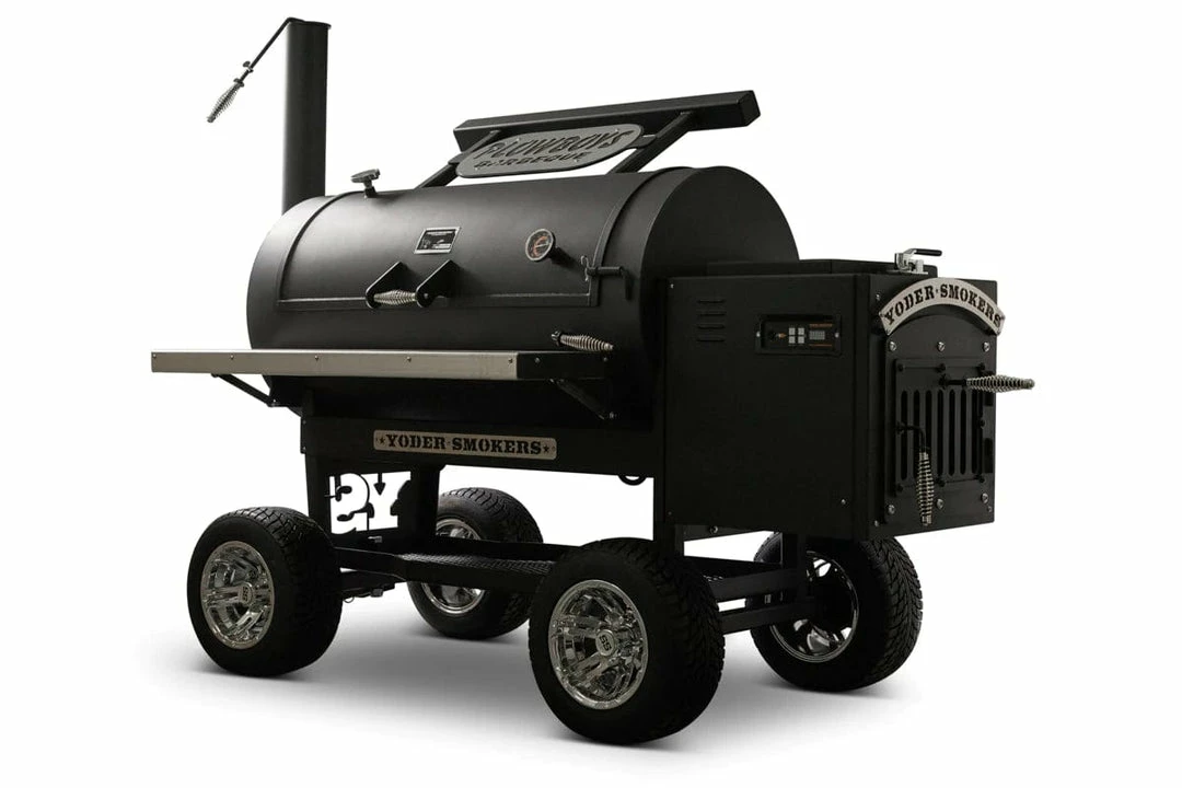 Whether you are competing in the fast-paced world of barbecue competitions or engaged in mobile catering, the Yoder Smokers Cimarron S Pellet Smoker delivers a robust cooking area in a small footprint to fit neatly into your mobile cooking package. The texture and color produced by the Cimarron are unmatched in the world of pellet grills. Our heat management system and Yoder Smokers ACS Adaptive Control System with two integrated food probes delivers results that are akin to a wood fired offset. The marriage of a pellet grill and old-fashioned wood pit to create an incredible smoker, designed with world-class results in mind.