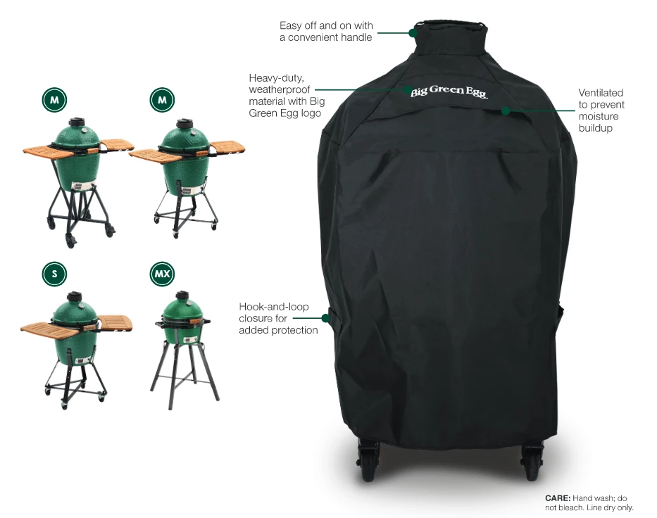 Keep your EGG looking like new with these attractive heavy-duty, ventilated and weatherproof covers, designed to work perfectly for years to come! Premium-quality fabric resists fading and offers increased durability even in extreme temperatures.