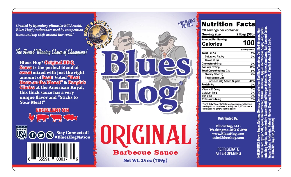 Blues Hog Barbecue Sauce is a Gourmet Sauce made from all natural ingredients, and its sweet, yet spicy, flavor enhances the taste of all meats prepared on the grill or in the kitchen. Great on chicken, pork, fish, wild game, mixed with ground meats and veggies. Especially amazing on ribs! GLUTEN FREE.