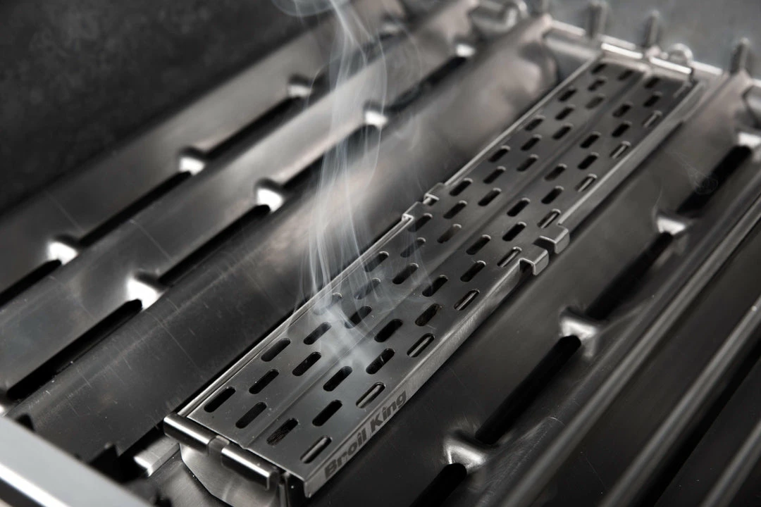 Stainless steel pellet smoker box for use with Broil King® pellets. Designed to sit on Flav-R-Wave or directly on grids. A quick and easy way to add smoke flavour to gas grills.
