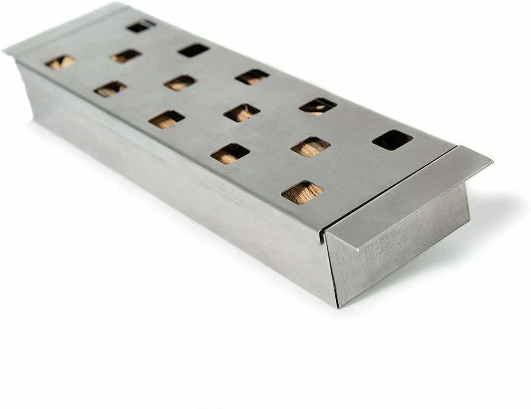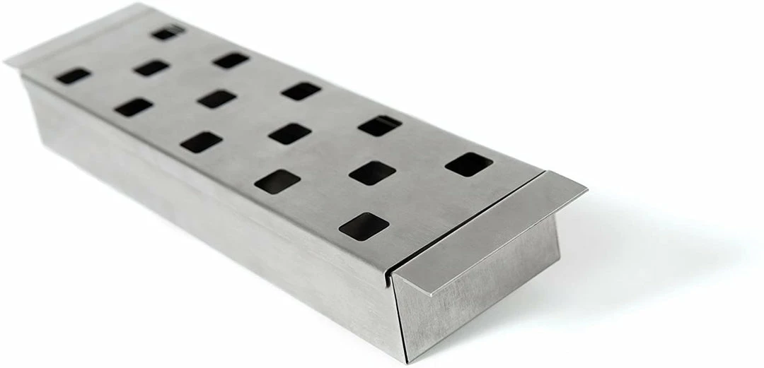 Stainless steel smoker box with handles and a hinged lid. Simple and easy to use for delicious and authentic smoke flavor.