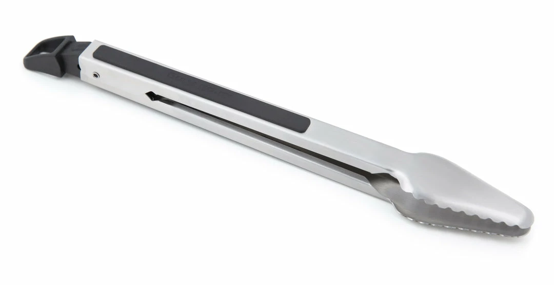 Soft grip locking tongs with double scalloped tips to grip scoop easily. Shorter tongs are ideal for smaller grilled items or where more precision is needed.