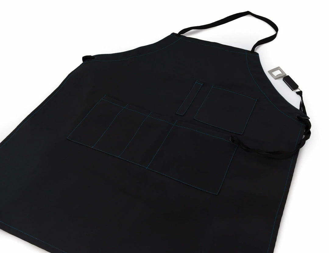 Crafted of the same water resistant material as Broil King® Professional grill covers, this apron offers protection from grease and sauces and is easy to wipe clean. Integrated bottle opener, pockets for a thermometer, drink, and multiple utensils. Adjustable neck strap with buckle mechanism.