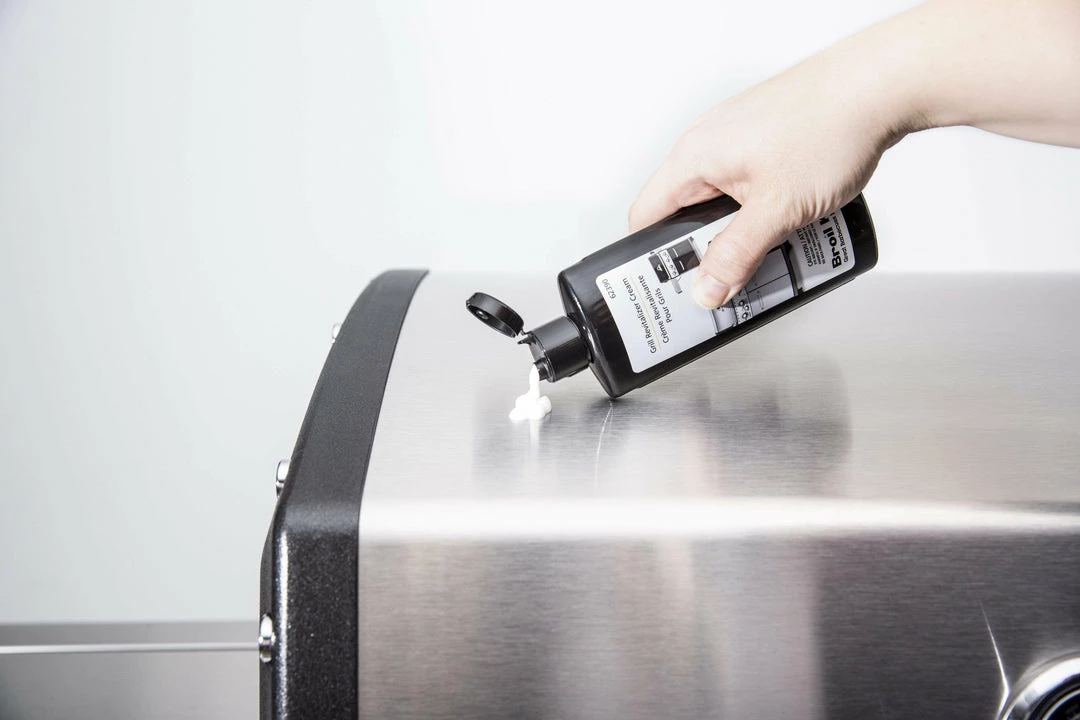Remove the toughest staining from your stainless or porcelain exterior surfaces, and make your grill look like new again. Goes on without water, scrub then buff away; the best way to revitalize a well loved grill. 8-oz (235 ml) bottle.