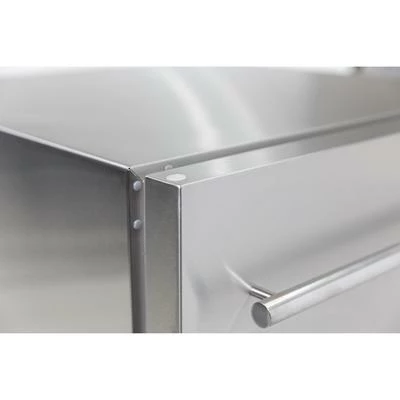 This sleek outdoor refrigeration system. Smudge-resistant stainless steel and alarm equipped, this unit is made for durability in exterior conditions and functionality in