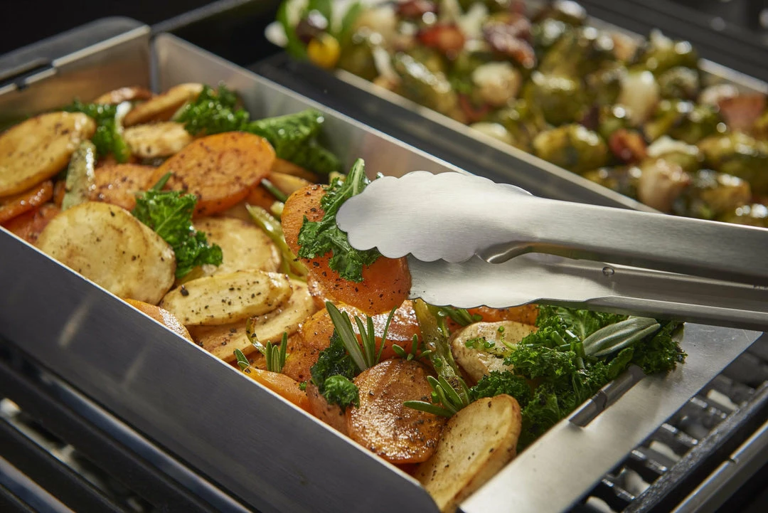 A deep stainless wok designed to sit on top of one grid segment in Broil King® grills. All stainless steel with a unique interlocking design so that it can work with the 69722 Narrow Topper as a stand alone smoker tray or roasting basket. 14.5-in x 6.5-in x 3.5-in.