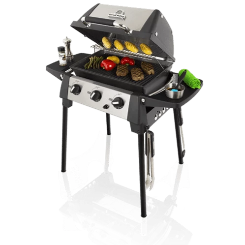 The Porta-Chefâ„¢ 320 features 426 sq. in. total cooking space, cast iron cooking grids, stainless steel Flav-R-Waveâ„¢ cooking system, 3 stainless steel tube burners, and folding resin side shelves. Four sturdy snap in legs are easily detachable and can be stored under the grill for easy portability.