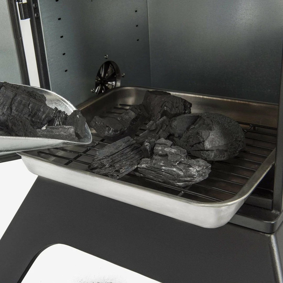 The Broil King® Smoke™ Charcoal features 770 sq. in. total cooking space, four adjustable stainless steel cooking grids, Sure-Lite™ electronic ignition system, Adjustable Roto-Draft™ cast aluminium damper system, and two rugged steel doors with gasket premium latch system.