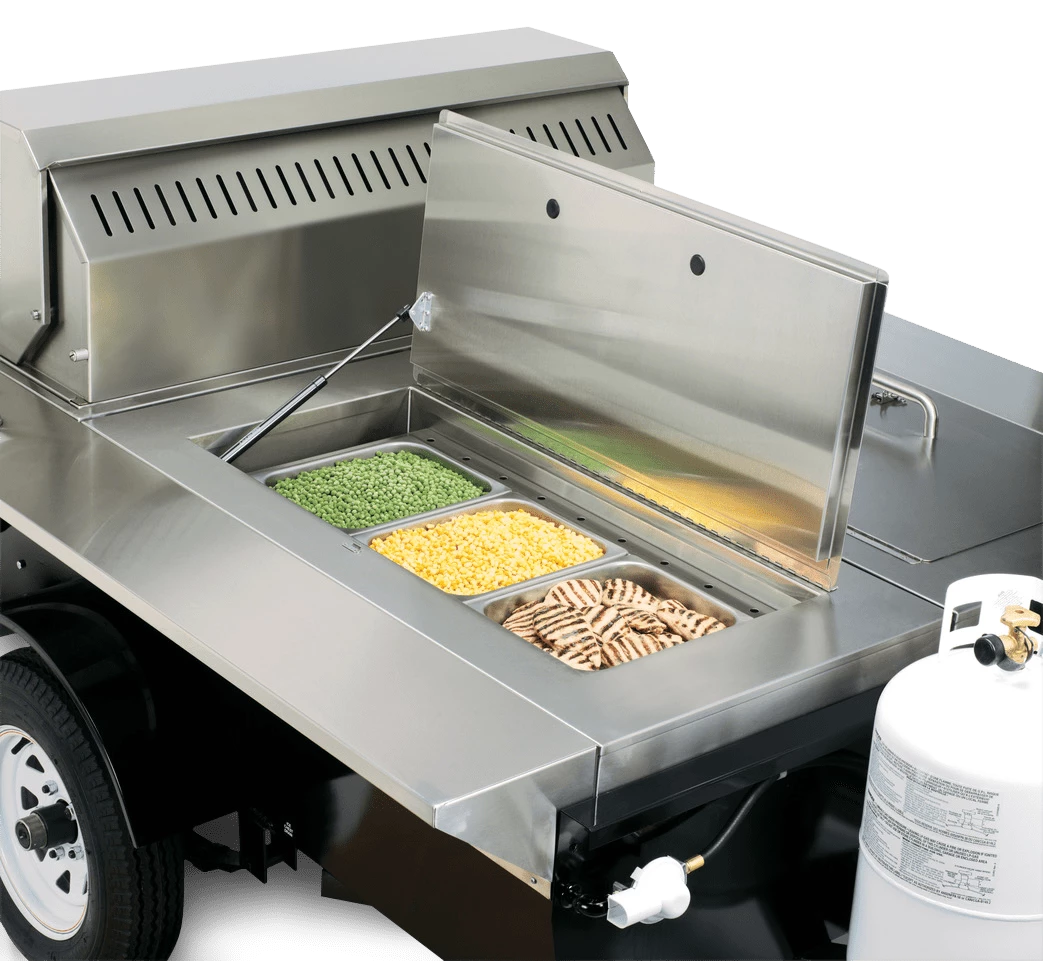 Tow the BBQ grill system to your venue, then fire up all of the large cooking area you need over six independently operated burners or set up a rotisserie hog roast option and you’re ready to go in minutes. The Towable Grill with storage is capable of cooking up 367 burgers/280 New York rib steaks per hour.