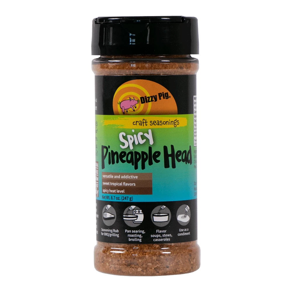 Back in February of 2013, Dizzy Pig owner Chris Capell created a seasoning for grilling fruit and called it Pineapple head Since then it has become one of our most popular seasonings. Our foodie customers proved that this sweet and slightly savory seasoning is not just for fruit. From chicken to bacon to shrimp to sweet potatoes to a topping for vanilla ice cream, its versatility is still being discovered.