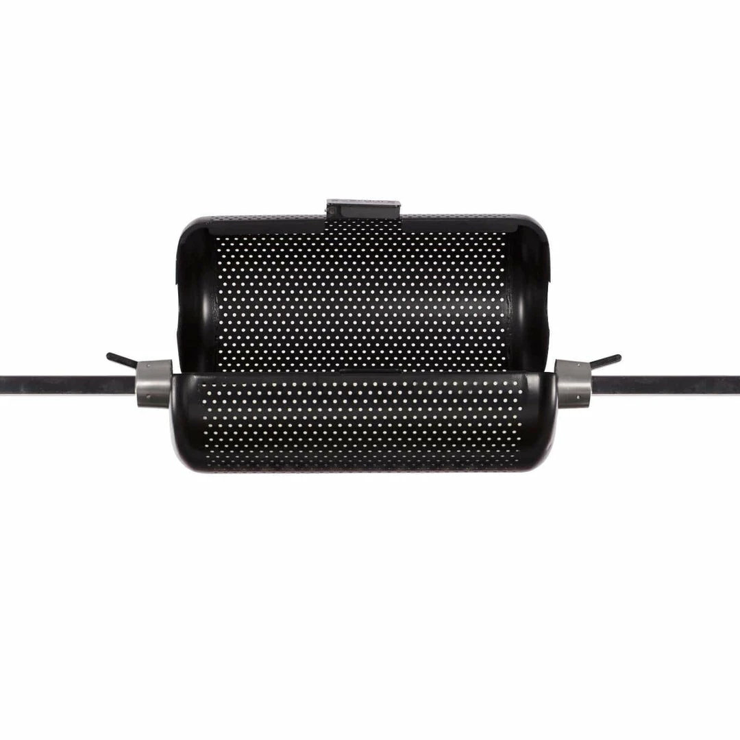 The Everdure by Heston Blumenthal Rotisserie Tumbler is a must have add on for any rotisserie lover. The round Rotisserie Tumbler is perfect for smaller food items that wouldn’t normally be able to fit on a rotisserie. Simply place your desired food in the Rotisserie Tumbler, slide onto your rotisserie rod and get cooking. Featuring patented clip lock forks, the tumbler will stay exactly where you want it. The body of the Rotisserie Tumbler is physical vapor deposition coated for a durable and food safe finish. The Rotisserie Cage is suitable for the Everdure HUB, HUB II, and the Fusion, or any BBQ with a 0.31-inch or 0.62-inch square rod (adapter included).
