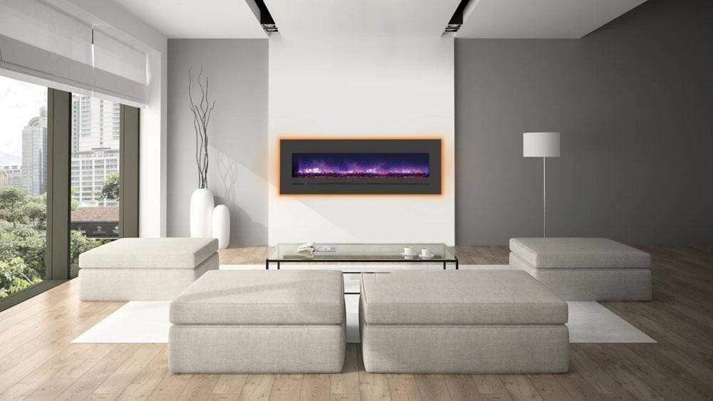 Available in 7 sizes you’ll find a unit that is perfect for any space in your home, business or commercial space. Boasting our FIRE & ICE® Flame presentation with three color LED light strips allowing for a multicolor flame options. With just a click of the included remote control, choose from blue, rose, violet, yellow or orange colored flames.