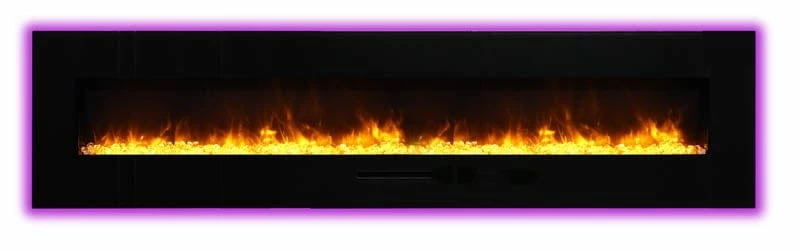 Heat is emitted from a single slot in the face of the surround. 13 colors of surround back-lighting illuminate spaces creating even more ambience. All Built-In Flush Mount / Wall Mount fireplaces come standard with a driftwood style log set and optional decorative media of EMBER or FIRE & ICE® media are available for purchase.