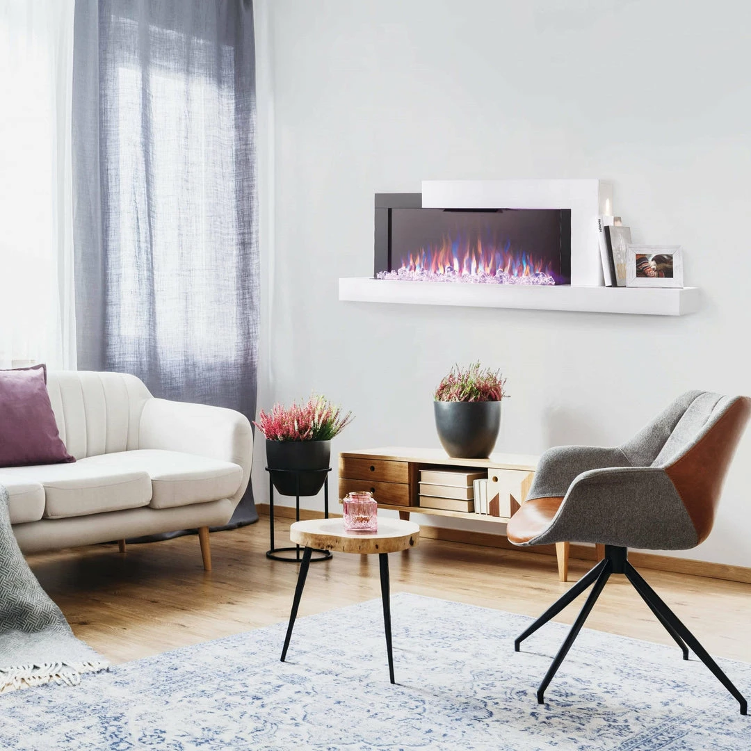 The Stylusâ„¢ Cara is as much an elegant focal point as it is a functional source of heat for a large room. Perfect for your modern decor or to give your current design to a transitional feel. The contemporary surround offers features such as a dual USB 2.0 charging port with LED color indication of charging status. Highlight your favorite objet d’art by displaying them on the side shelf with an accent light that offers color and brightness adjustments.