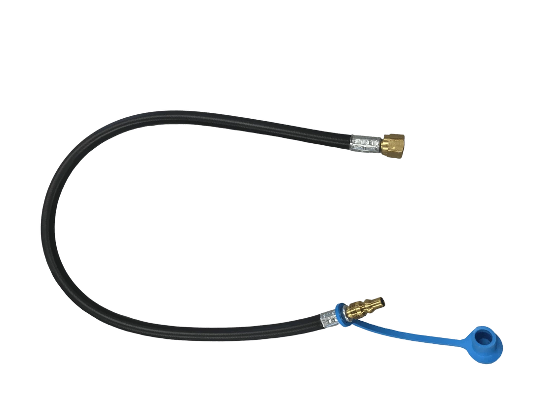 Hose 32′ x 3/8″ (3/8″ mp x 3/8″ ff ), natural gas or propane, with female flare quick connect nipple.Â
