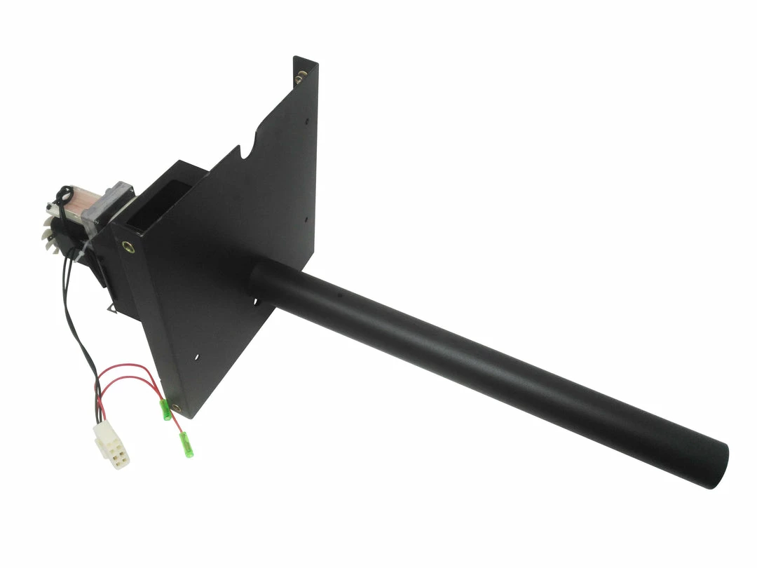 This complete unit comes assembled with the auger motor, gearbox, auger shaft, and auger bit together. This assembly is for Jim Bowie grills that have a centered fire pot position. The length of the auger tube is approx 17-3/8″ long.Â