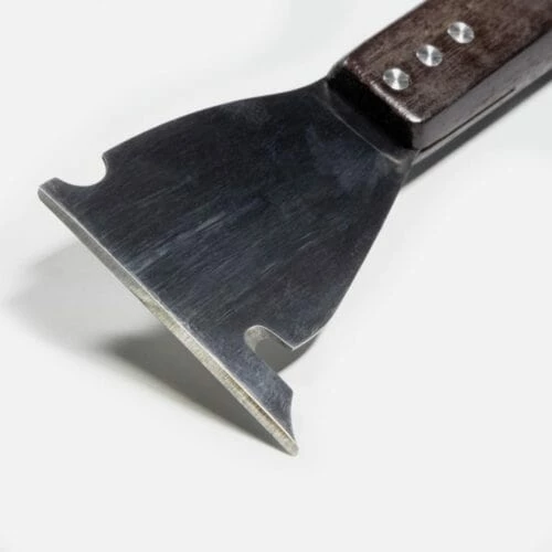 Handy little tool to help clean those hard to reach places on your GrillGrates. Perfect for maintaining the interlocking joints where carbon tends to accumulate. Also works really well at keeping the holes in the GrillGrates open. For occasional use on the tops of the rails for removal of those stubborn little bits a grill brush won’t remove. Works really well for detailing under your GrillGrates on places such as the fire box, flame tents and drip pans. 14″ wooden handle with 3″ stainless steel scraper. Leather hanging strap.