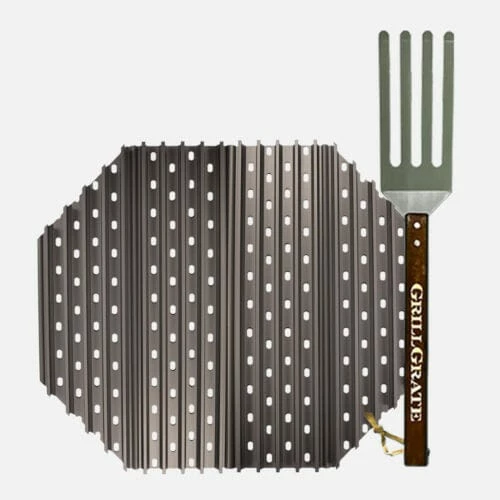 GrillGrates provide protected, high-heat grilling on the Primo Oval XL 400. The bottom plate blocks hot rushing air and flames from charring and drying out food, keeping the juices sizzling with the food instead of feeding the flames. GrillGrates are used on top of the existing grate surface. Every set comes with a GrateTool which is part fork, park spatula that fits between the rails to get under your food and lift it without scraping.