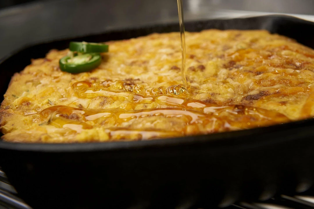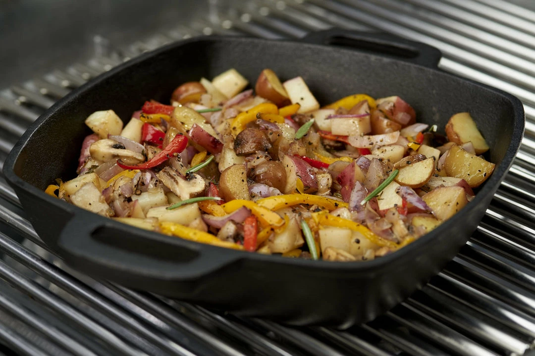 Heavy duty cast iron for authentic skillet cooking; a great accessory for the side burner, grill surface, or in the kitchen.
