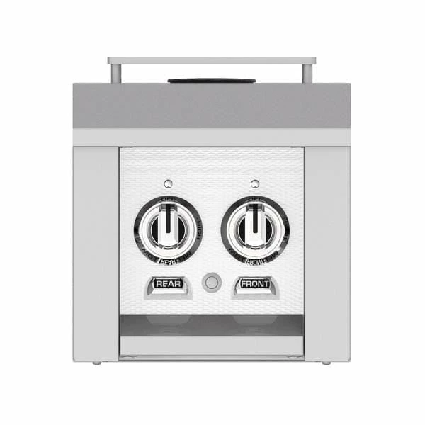 The Hestan double side burner can be built into your outdoor kitchen island or mounted on your Hestan freestanding grill cart. It offers a 20,000 BTU and 10,000 BTU burner so you can handle any sauce, stock, or side dish while you grill.