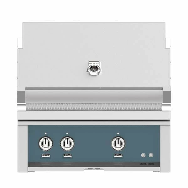 Hestan built-in grills perfect the patio with heavy-duty performance and thoughtful design – earning VESTA awards for Best Gas Grill and Best In Show. Hestan built-in grills deliver the utmost performance to your custom enclosure with 25,000 BTU high-performance burners, concealed whisper quiet infrared rotisserie and motion-activated under-hood lighting. This grill has two burners.Â
