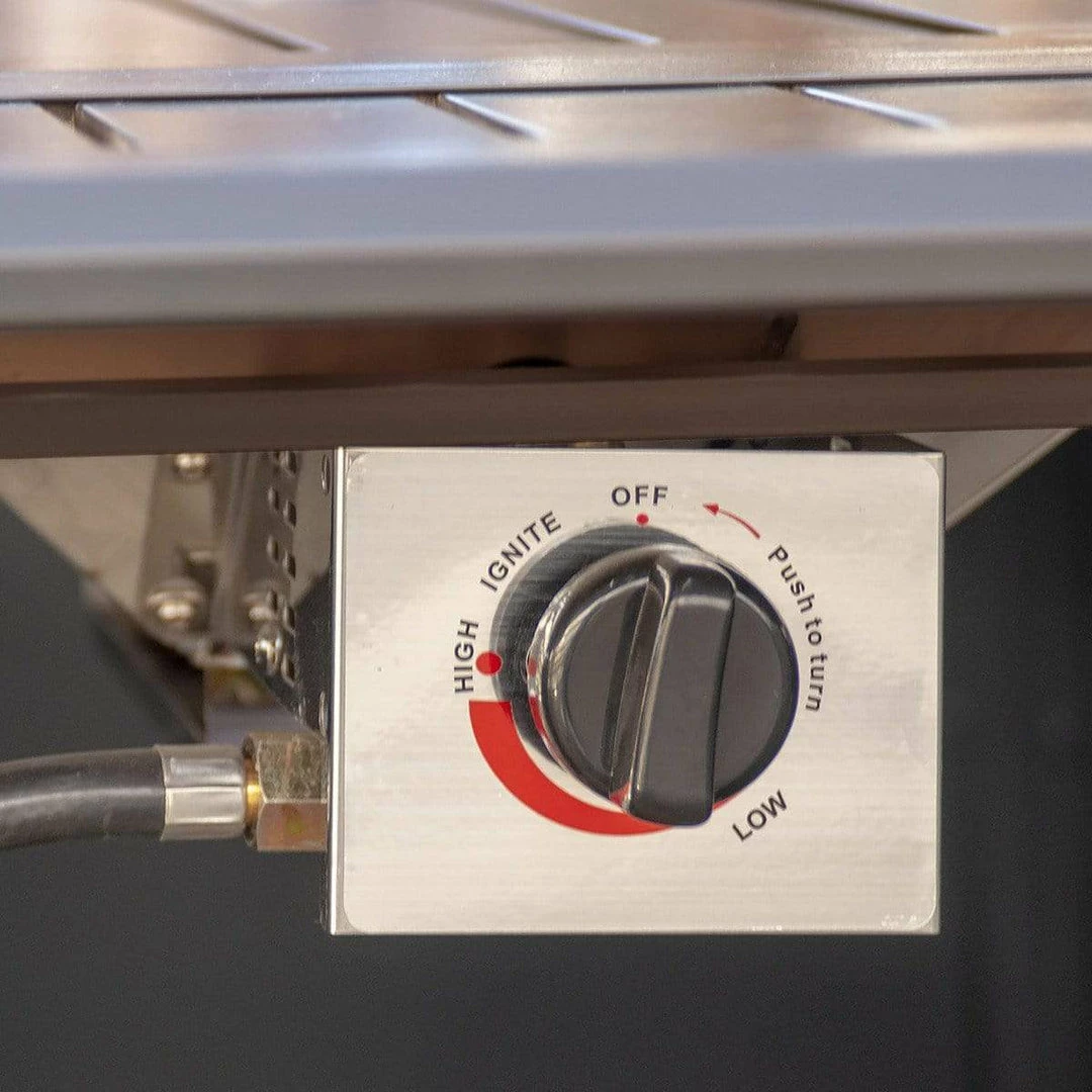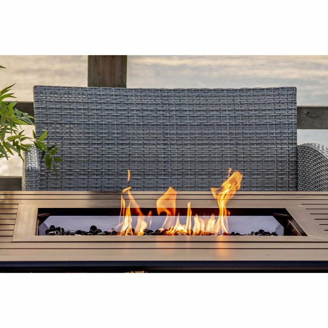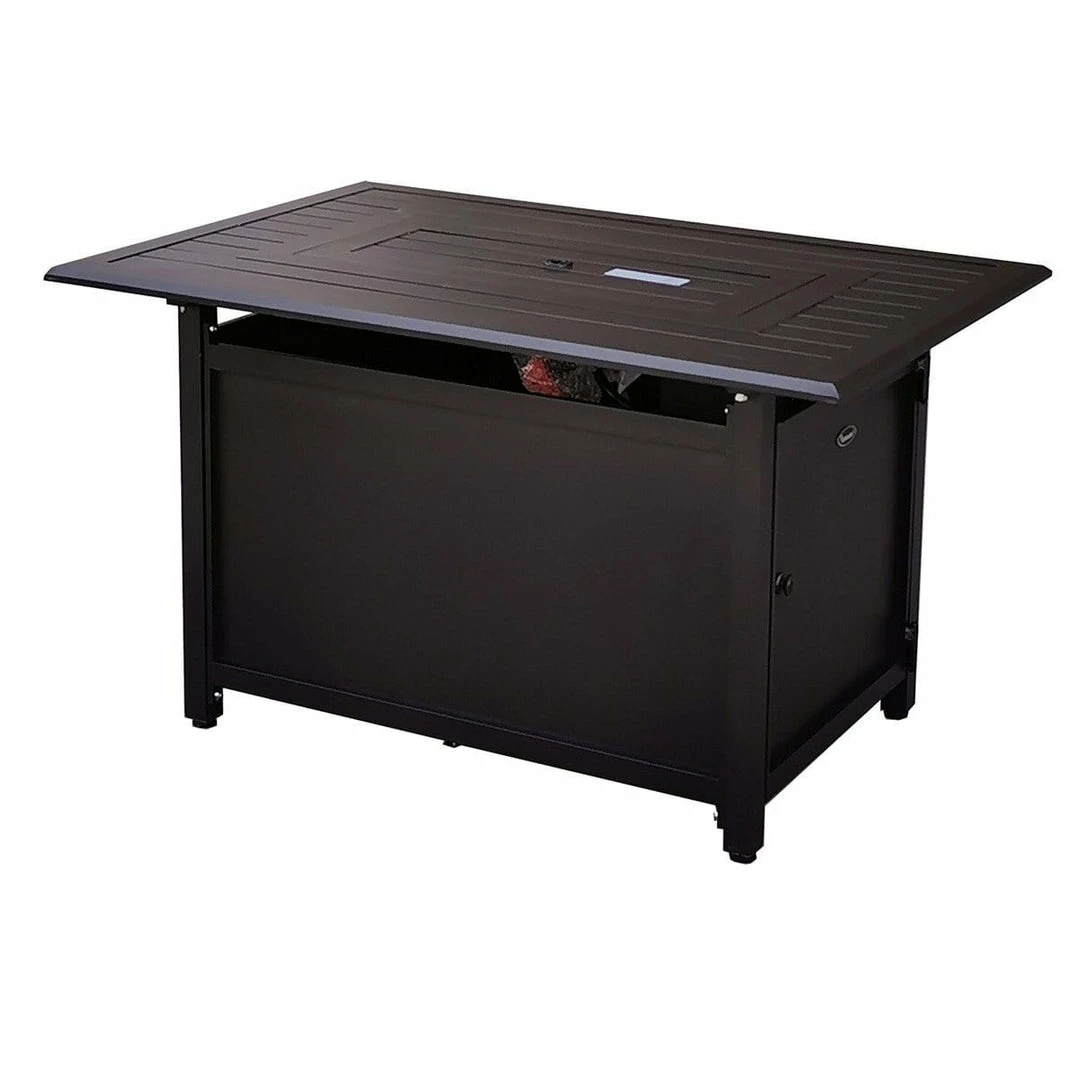 The Gale Rectangle Aluminum Convertible Fire Table emits 50,000 BTUs of heat and can be turned into a table with the included fire bowl lid. The propane tank hides away under the table and you can convert to natural gas anytime with the included conversion kit.