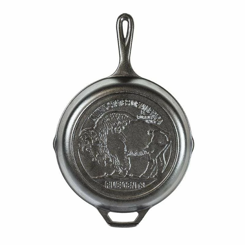 In celebration of this country’s exotic natural wildlife and Americana, this 10.25 Inch Skillet has the Buffalo Nickel design cast onto the bottom, making it a piece enjoyed by both cast iron users and collectors. This skillet features both an assist handle and an easy-grip handle for great control and hanging storage when not in use. Experience excellent heat distribution and retention for consistent, even cooking. Seasoned and ready to use.