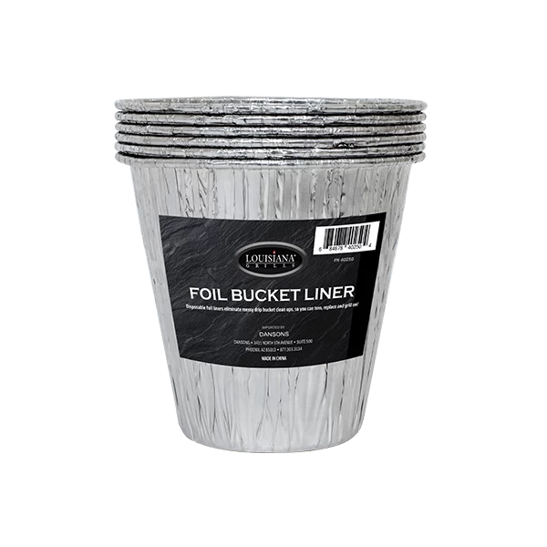 Toss your grease and go with the Louisiana Grills Grease Bucket Liner. The disposable liner is made from aluminum material and is compatible with all Louisiana Grills grease buckets. It holds up to 2 quarts and makes grease capture and cleanup a breeze. Place the liner in your grease bucket and leave it all year round. Once full, simply dispose of the grease or the entire liner.