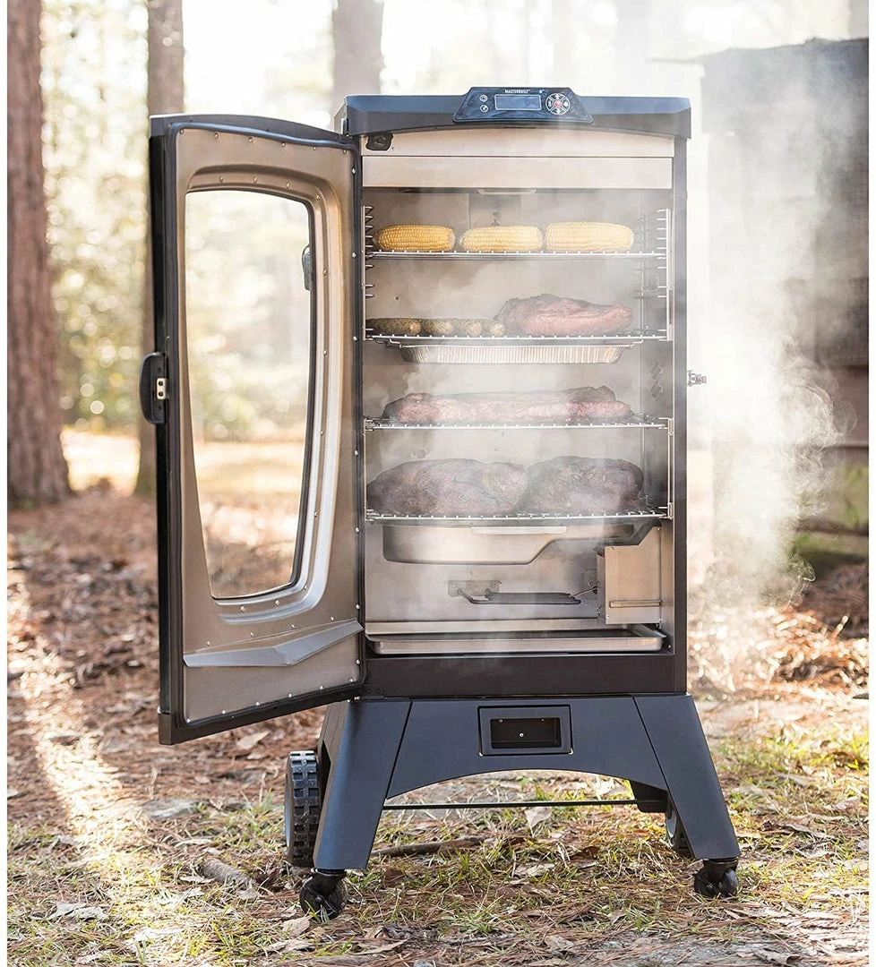Whether you are a novice or backyard BBQ pro, anything can be mastered when given the right tools. With the 40-inch Digital Electric Smoker monitor your masterpiece using Bluetooth Smart technology and achieve perfect results with the built-in meat probe thermometer. Dabble in flavor using a variety of wood chips in the patented side wood chip loading system. With four chrome-coated smoking racks, there is plenty of room to smoke up to 16 chickens, 4 turkeys, 8 racks of ribs, or 8 pork butts. Master the art of smoking with Masterbuilt.