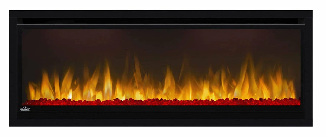 Napoleon’s Alluravision™ 42 Deep Depth linear electric fireplace allows you to see the fireplace and not the frame with its nearly frameless linear design. As a contemporary electric fireplace, the frameless modern look is just as important as its functionality. Easy to use, the plug and play installation allows this unit to be hung on the wall and turned on immediately.