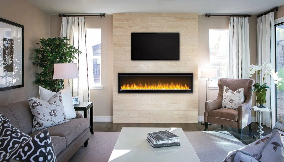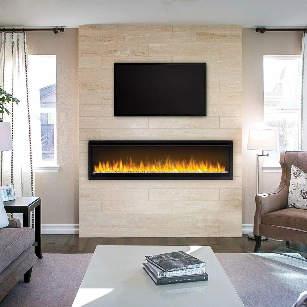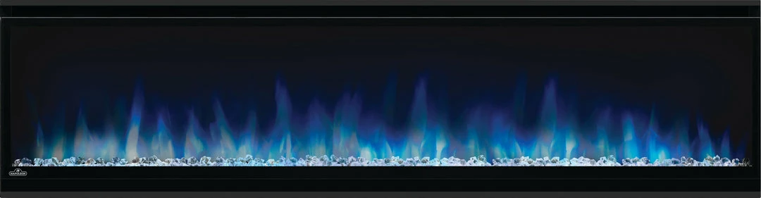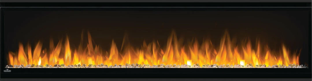 Napoleon’s Alluravision™ 60 Slimline linear electric fireplace allows you to see the fireplace and not the frame with its nearly frameless linear design. As a contemporary electric fireplace, the frameless modern look is just as important as its functionality. Easy to use, the plug and play installation allows this unit to be hung on the wall and turned on immediately. Its slim design barely protrudes into the room.