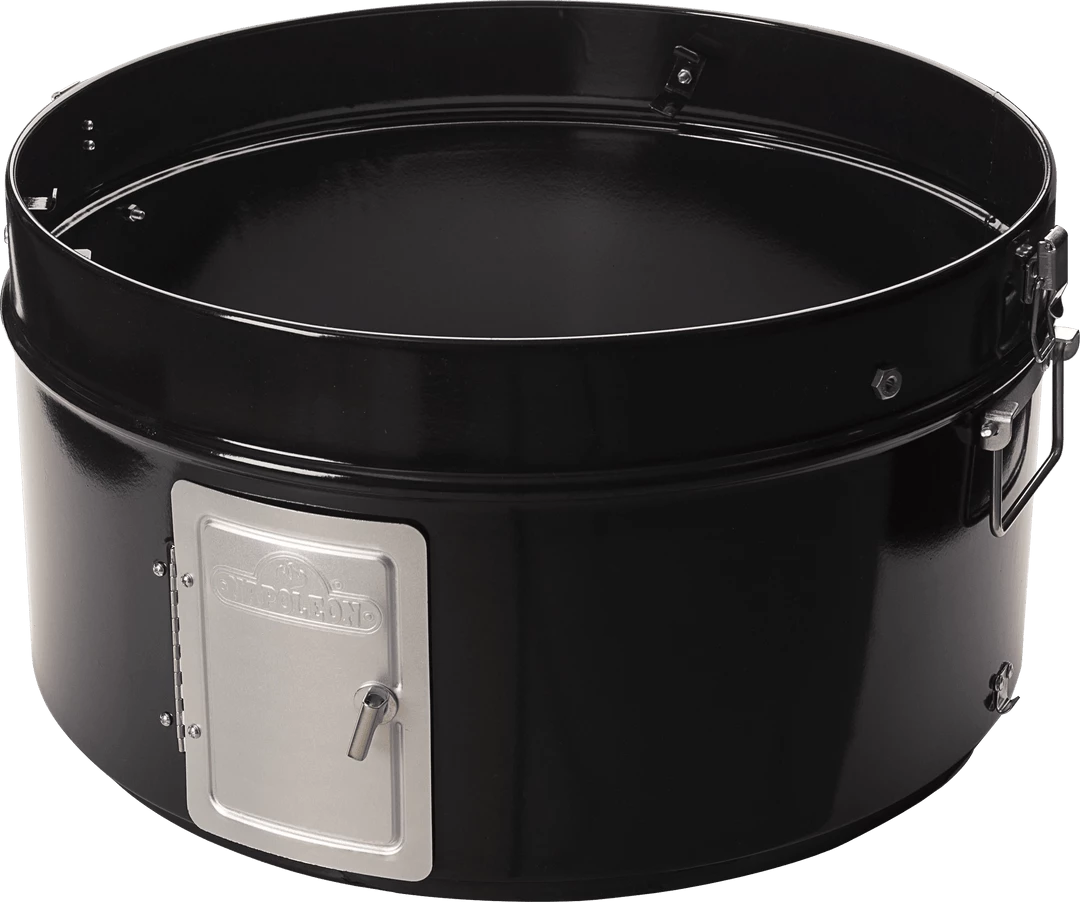 Increase the capacity for your Apollo 300 Smoker by adding an extra smoking chamber. Increased height from the addition of this chamber allows you to smoke larger cuts of meat or fish from the hangers in the lid. Made from black porcelainized enamel and featuring an easy access door to check on what’s cooking, this additional chamber assembly for the Apollo® 300 is ideal for adding a little extra space to your favorite smoker.