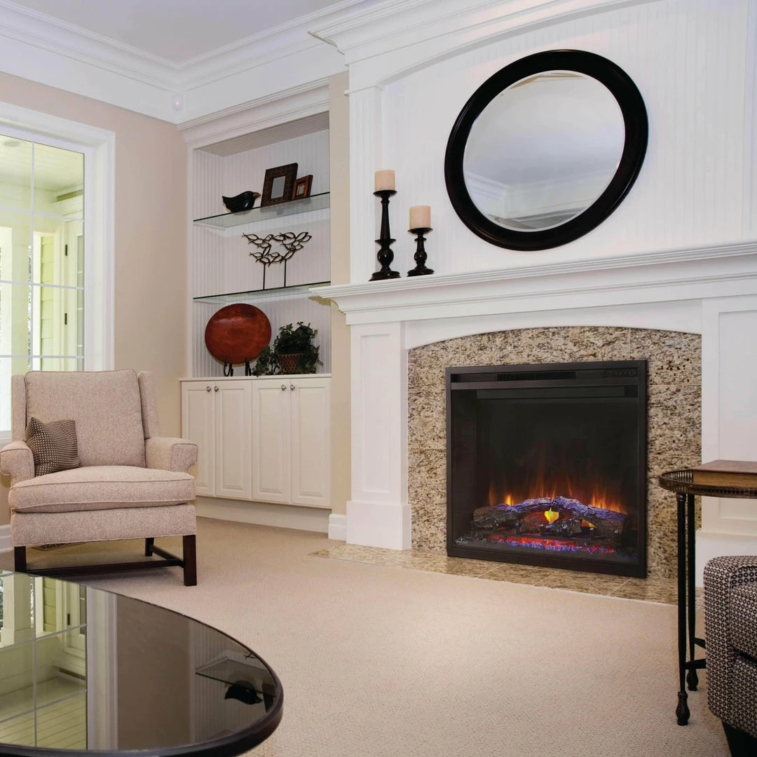 This self trimming electric fireplace is a builder special and a tradesman’s dream. With the highest heat output and best looking flame in it’s category, the dual voltage options allow a plug and play or hardwire installation with 120/240V.