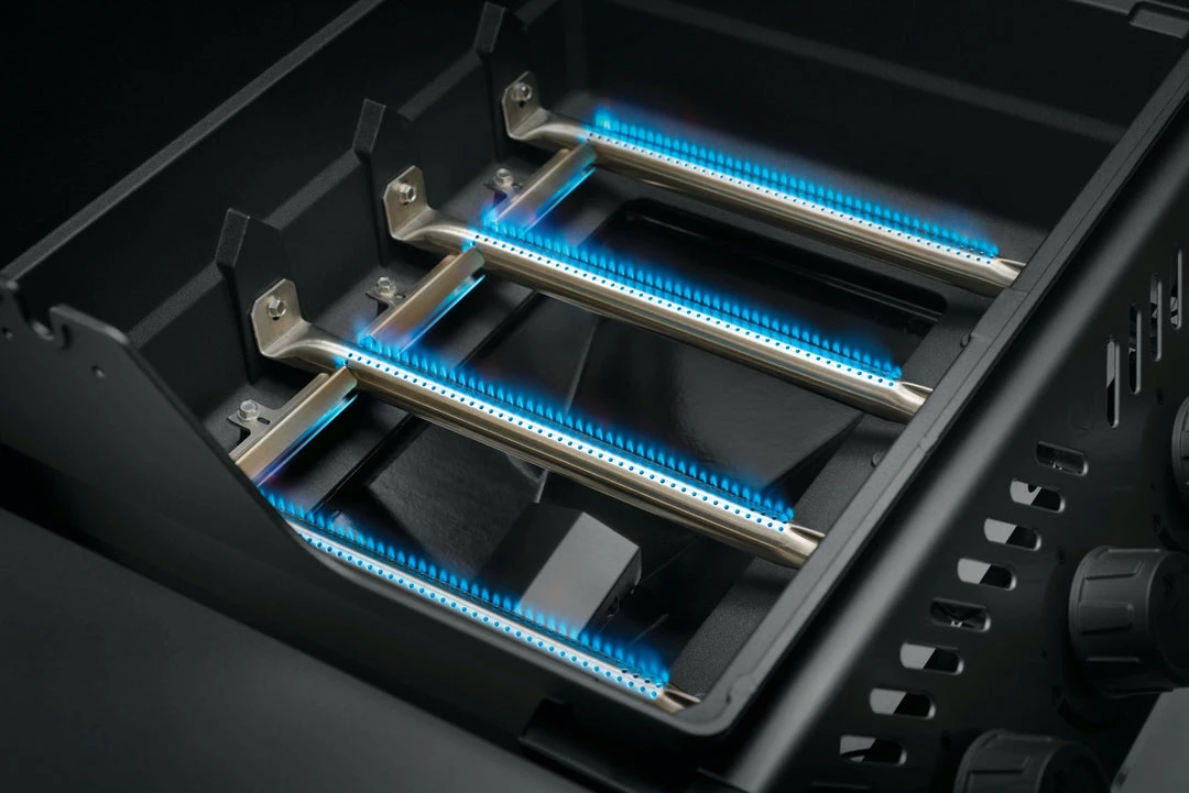 The Freestyle 425 Propane Gas Barbecue with Range Side Burner is a compact grill with premium features and unbeatable value. Ignited by the instant JETFIRE ignition system that lights the main burners with a jet of flame easily, every time. Get the perfect sear over the cast iron porcelainized enamel cooking grids. Four stainless steel burners provide even heat, easily controlled and monitored by the onboard temperature gauge. The rugged wheels allow this barbecue to go where the action is, while the easy-to-fold side shelves, featuring tool hangers and a bottle opener, make sure that the Freestyle meets your lifestyle and space.