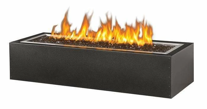 The Napoleon Linear Patioflame® comes complete with a Hammertone pewter powder coated cabinet and exclusive Topaz CRYSTALINE™ ember bed. The convenient piano hinged door allows easy access to the control panel and features a safety valve that turns off the gas if the flame goes out. The burner, burner chassis and convenient cover plate, complete with handle, are made from durable weather resistant brushed stainless steel. A truly unique outdoor fire pit with a slim, sleek modern design, adding to the excitement of outdoor living.
