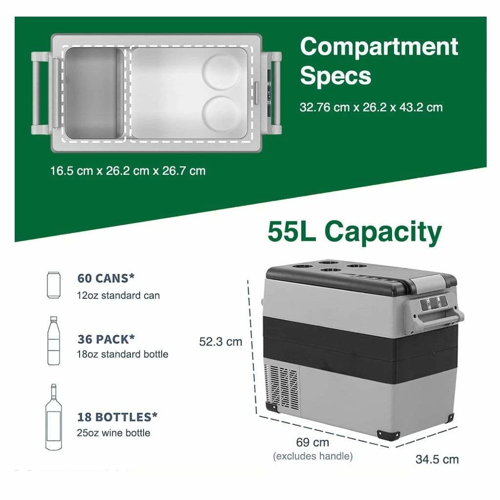 The new 55L Moose portable 12V refrigerated cooler is the ultimate powered cooler for outdoor living. Keep your food reliably fresh and cold for as long as you need it, without the hassle of melting ice.Â