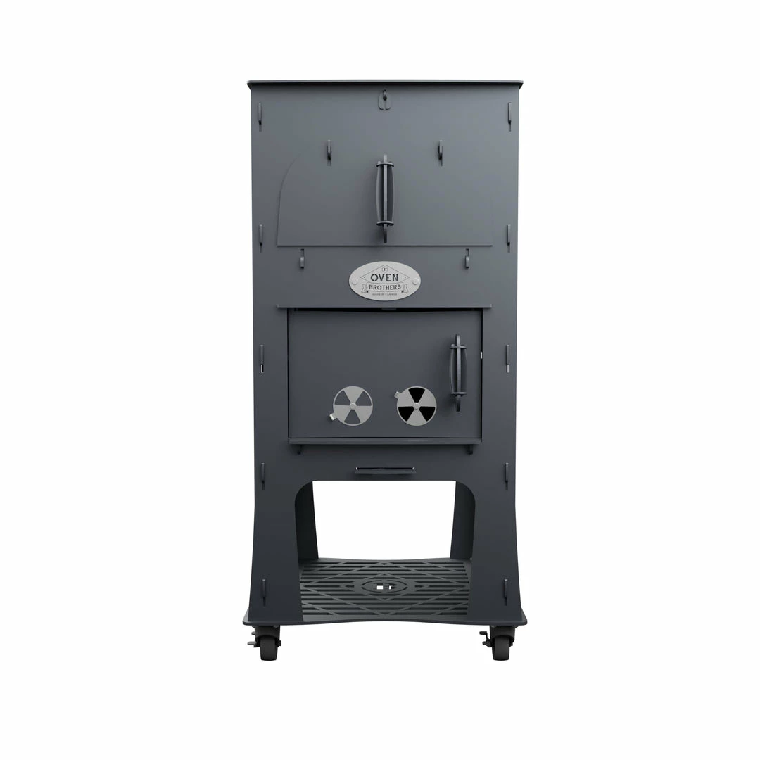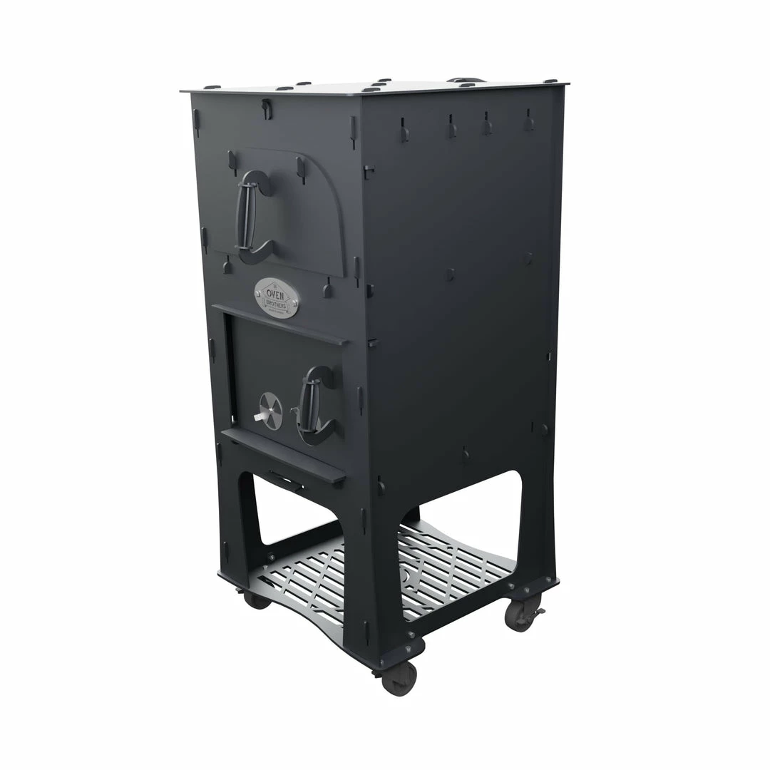 A two-person approach to assemble our ovens is recommended. We proudly achieved a “no tools, no hardware” assembly process with our unique interlocking design allowing for an assembly time of an hour and a half or less. Plus, it comes with a custom wheel kit which allows for greater mobility & versatility
